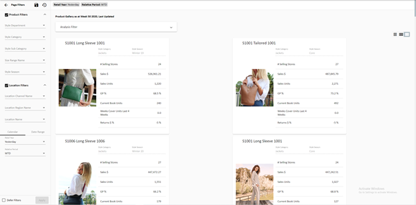 - The Page Filter Component on the left controls the filtering on the page whether it be by Location/Product or Calendar