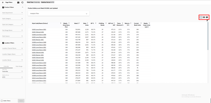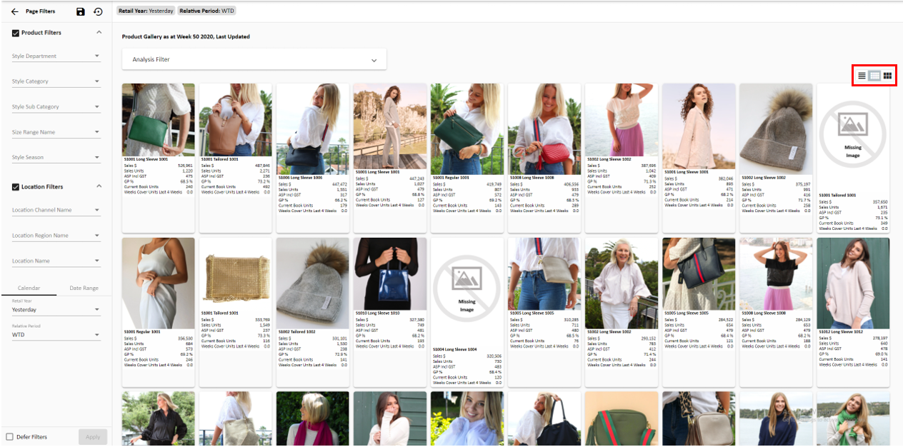 - The Analysis filter above the gallery can be utilized for Custom Sorting and Setting of Display Items.