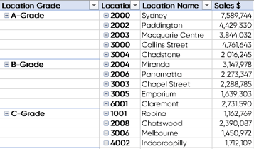 Whilst this view allows the user to expand and collapse the attributes, it is not the ideal view when used for pivots with multiple values and attributes.