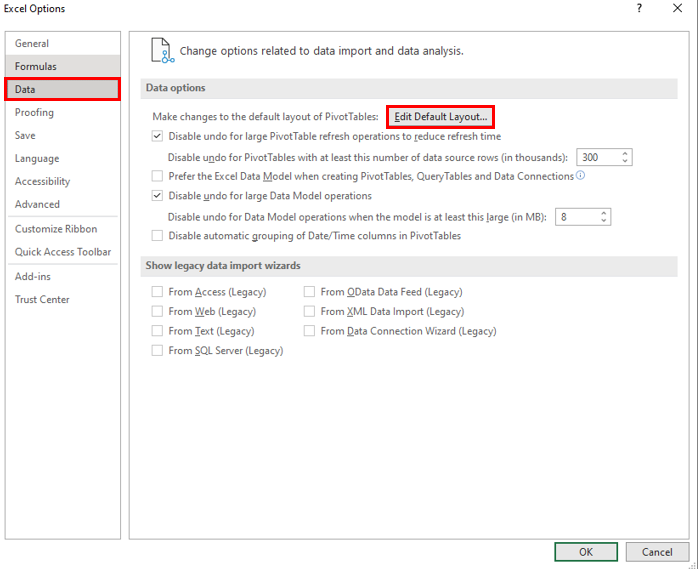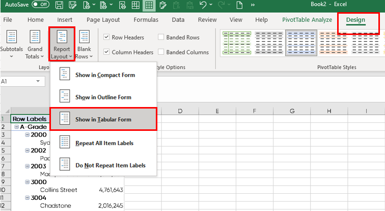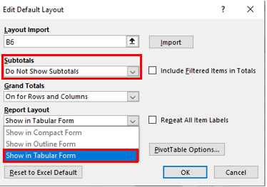 Follow the below instructions to change the view so that all excel pivots open directly in the Tabular Form view: