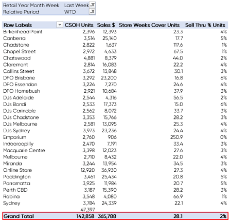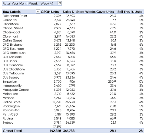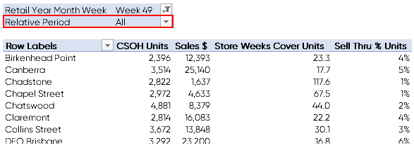 Below example is a Weekly Location Sales report run on a Monday where a distinct time period [Week 49] has been selected.