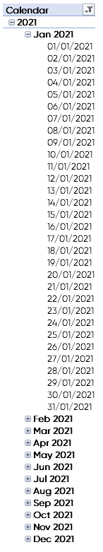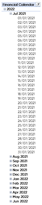 This can be accessed using the embedded hierarchy fields that have a '+/-' button to expand and collapse from 'year' down to 'date'.