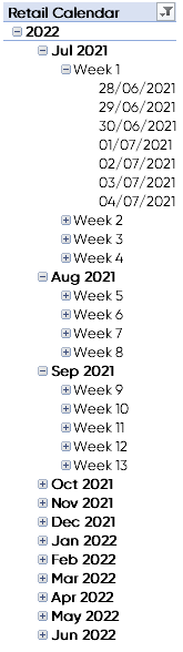 - Uses set Retail weeks that run Monday - Sunday (or as defined by the individual business)
