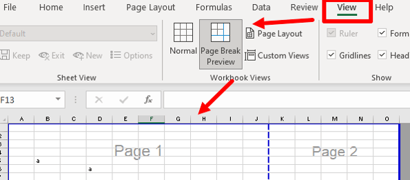 *Views - refers to the excel tab view, which formats the printable area of a workbook.