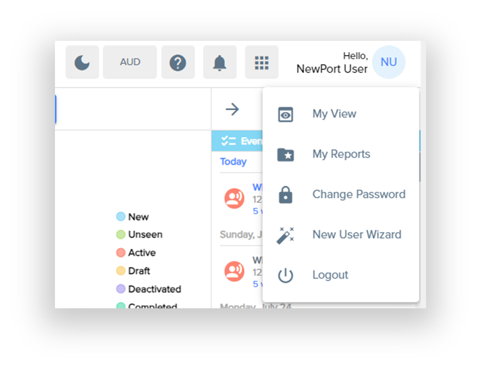 - The default view is the Dashboard but you can drop down and select any of the other Activities for more of a focused view