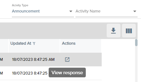 - View response - This will pop out a new window showing you the detail of the activity.