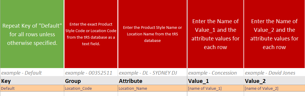 Please note: Custom product attributes are maintained in an Excel workbook called Product Classification file and are mapped and integrated by a Style Code or description available in your tRS data warehouse.