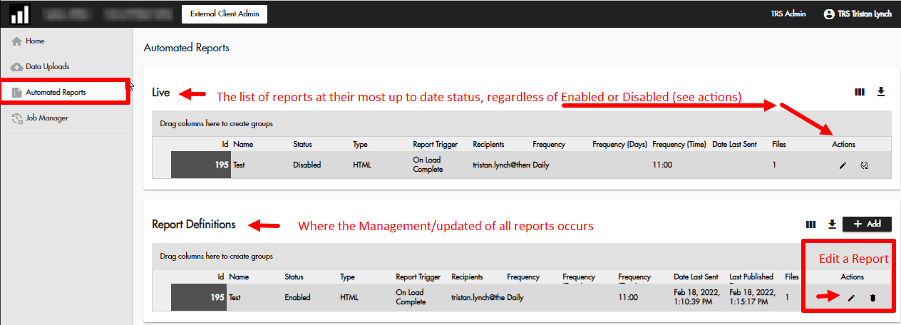 - These are the 'final' version of your reports that will send if enabled or can be paused by disabling.