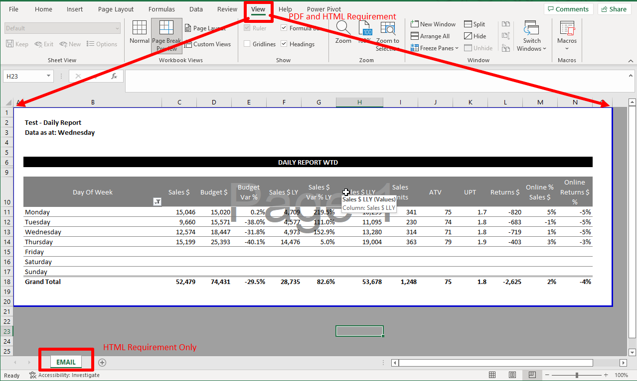 7. Critical Check - All Reports - Check - the View of the excel, to ensure it saves only the visible report.