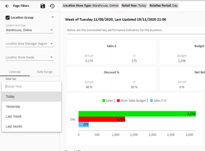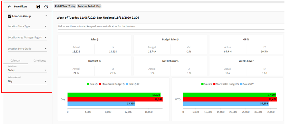 - The three common groups we draw our page filters from are the Location, Product, and Calendar/Relative Period areas of the cube
