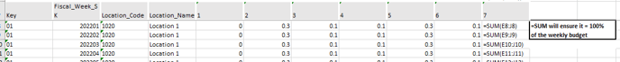 The Daily Split budget file is loaded by Retail Week and Location against the Day of the week (1-7)
