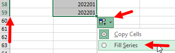 - Select the Auto Fill Options and Fill as Series