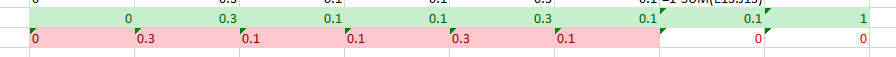 this is most commonly due to the final column K still being the formula =1-Sum(E8:J8)