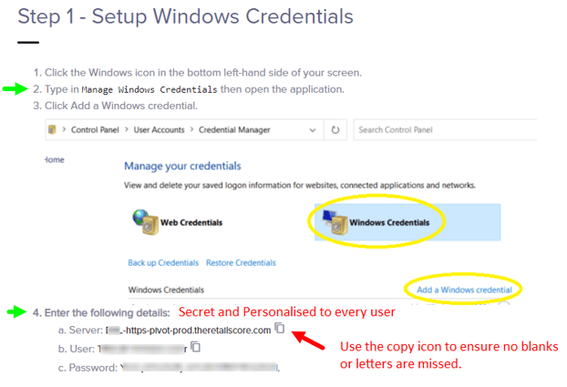 - Specifically - Step 1 (2-4 Updating your Manage windows credentials)