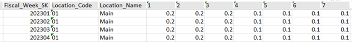 - This is loaded by Location and/or Product by Retail Year and Week.